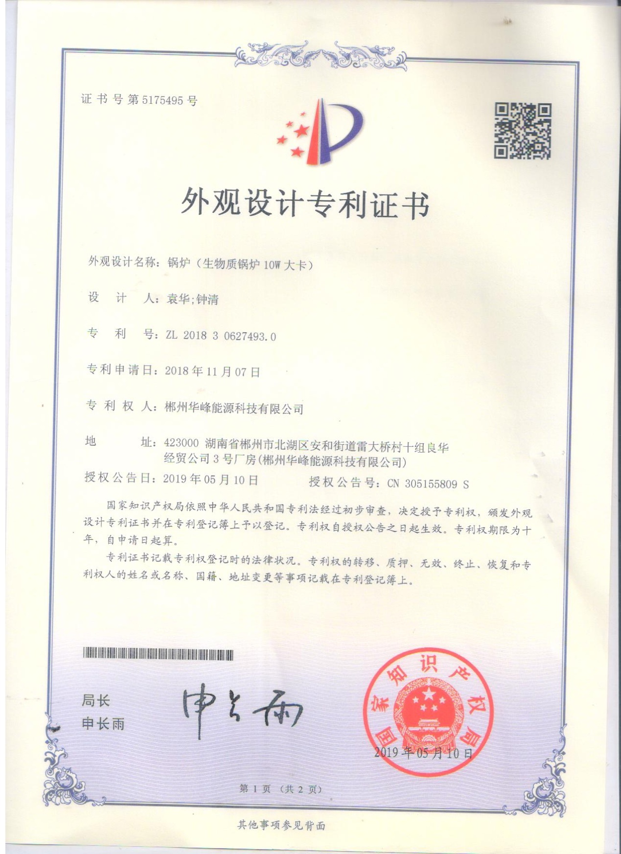 外观设计专利证书